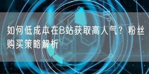 在B站获取高人气是许多内容创作者的目标,但如何低成本实现这一目标呢?本文将为你解析粉丝购买策略,助你一臂之力。