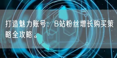 通过以上的粉丝增长购买策略,结合优质的内容和互动沟通,您可以在B站打造具有影响力的魅力账号。本文提供的全攻略和技巧,希望能助您在B站获得更多粉丝的关注和支持。