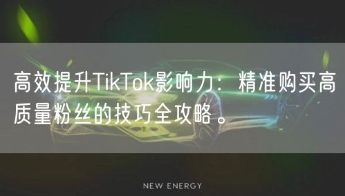 TikTok作为全球热门的短视频社交平台,拥有庞大的用户群体和无限的商业潜力。在这个平台上,影响力的大小直接决定了你的内容能否被更多人看到。而购买高质量粉丝是快速提升TikTok影响力的一种有效方法。本文将为你提供一份全面的攻略,教你如何精准购买高质量粉丝,高效提升你的TikTok影响力。