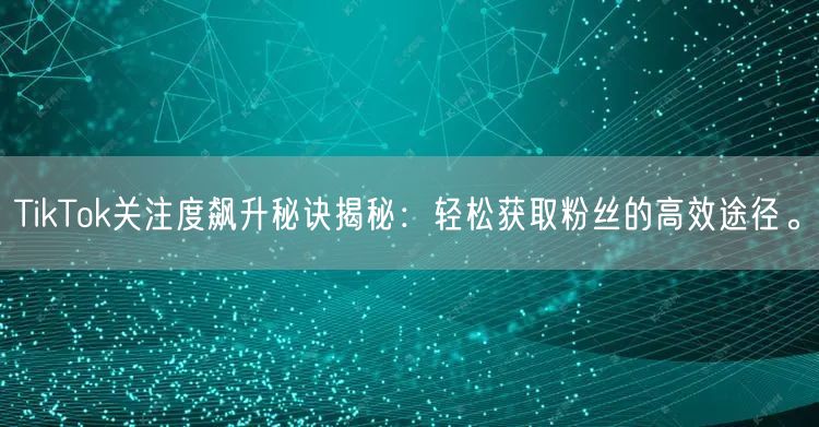 TikTok已经成为全球最受欢迎的社交媒体平台之一,越来越多的人选择在TikTok上分享自己的创意和才华。在这个平台上,拥有大量的粉丝意味着更高的曝光率和更多的机会。那么,如何在TikTok上轻松获取粉丝并提升关注度呢?本文将为你揭示TikTok关注度飙升的秘诀。