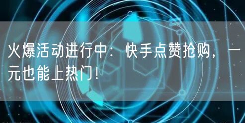 近日,快手平台推出了一项火爆活动——“快手点赞抢购”,引起了广大用户的热烈关注和积极参与。在这个活动中,不仅有机会赢取丰厚的奖品,而且一元钱也有机会让你登上热门,成为众人瞩目的焦点!